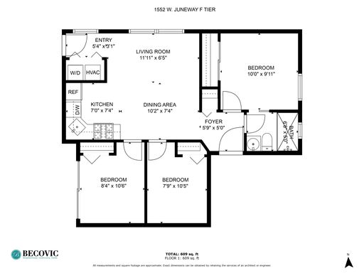 1 Baths | 609 Sq. Ft.