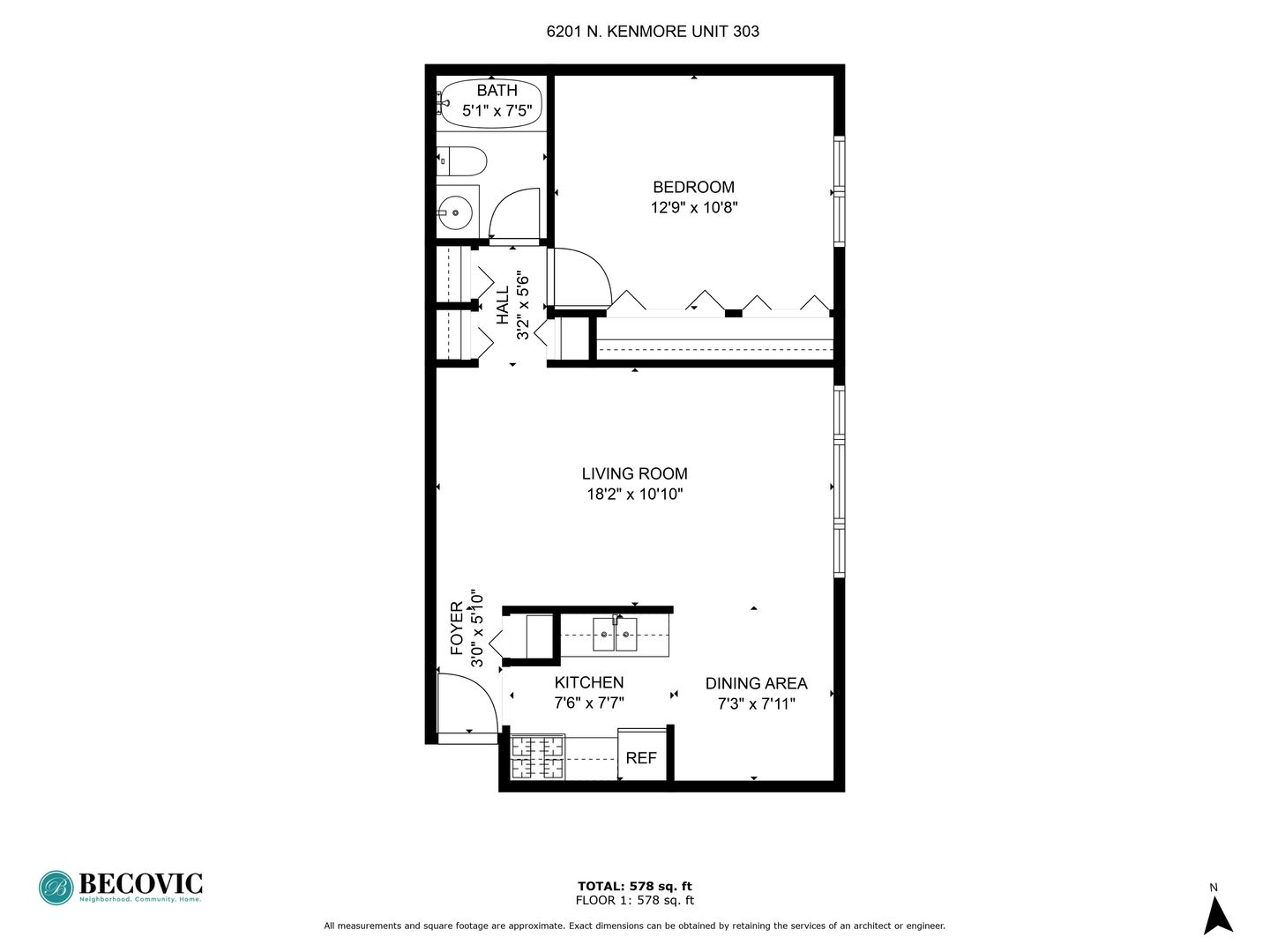 1 Baths | 578 Sq. Ft.