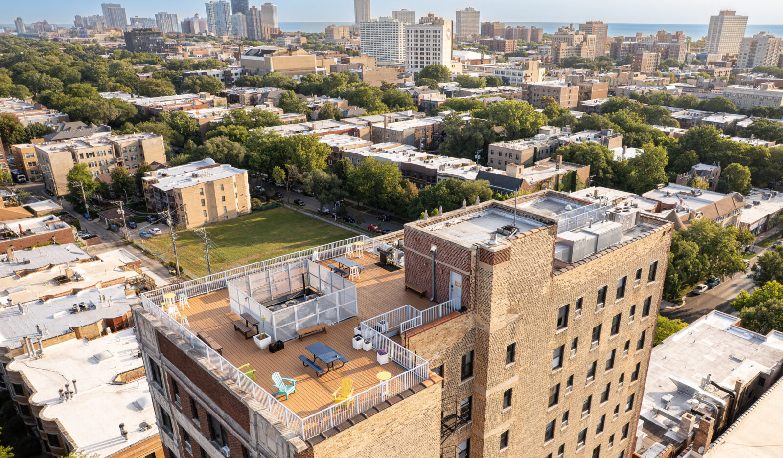 Convenience is built in with trash chutes on every floor, while premium amenities include a 24/7 fitness center, a rooftop deck with stunning city views, and the ease of a coffee shop right inside the lobby entrance. Located just four blocks from the Wilson Red Line CTA station, you’ll have quick access to the rest of Chicago while being surrounded by Uptown’s best bars, restaurants, and shops—a true Walker’s Paradise.