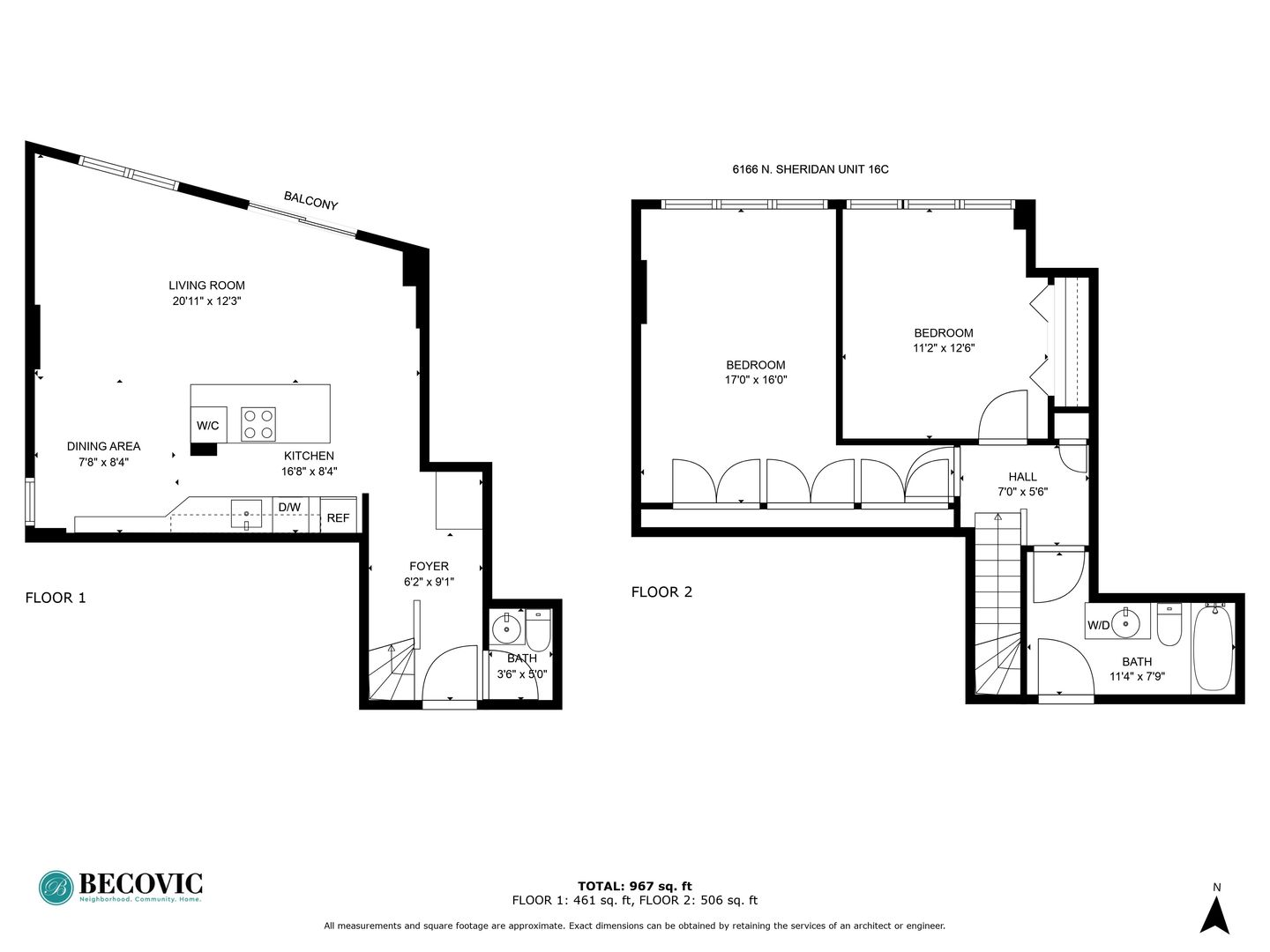 1.5 Baths | 967 Sq. Ft.